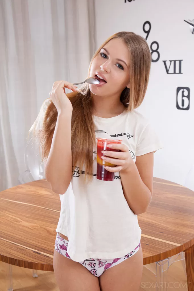- 4. Горячая молоденькая Клариса показывает свои аппетитные дырочки и ножки на кухонном столе.