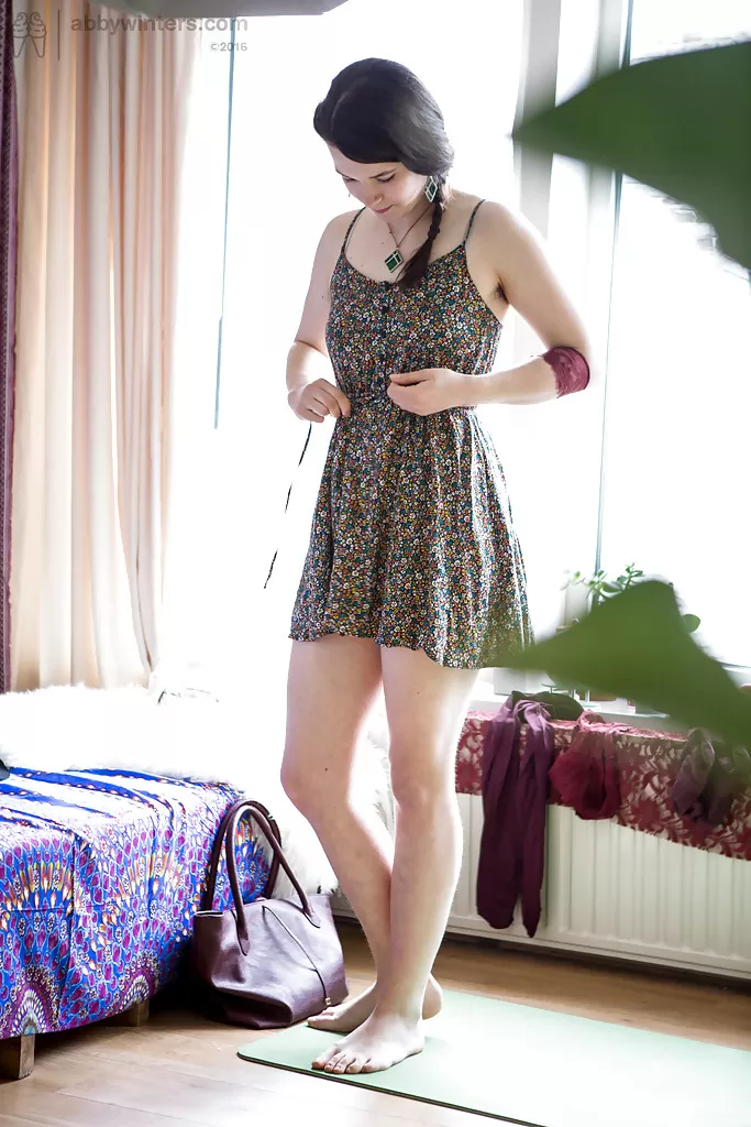 - 2. Молодая брюнетка Данниела обнажает свои большие сиськи, раздеваясь на балконе.