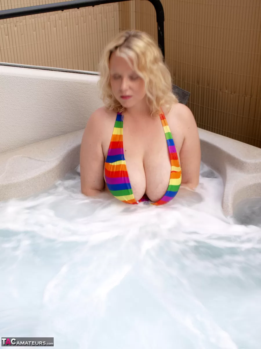 - 3. Соло девушка Лилиан Фэй выпускает свои большие натуральные сиськи из бикини в океан.