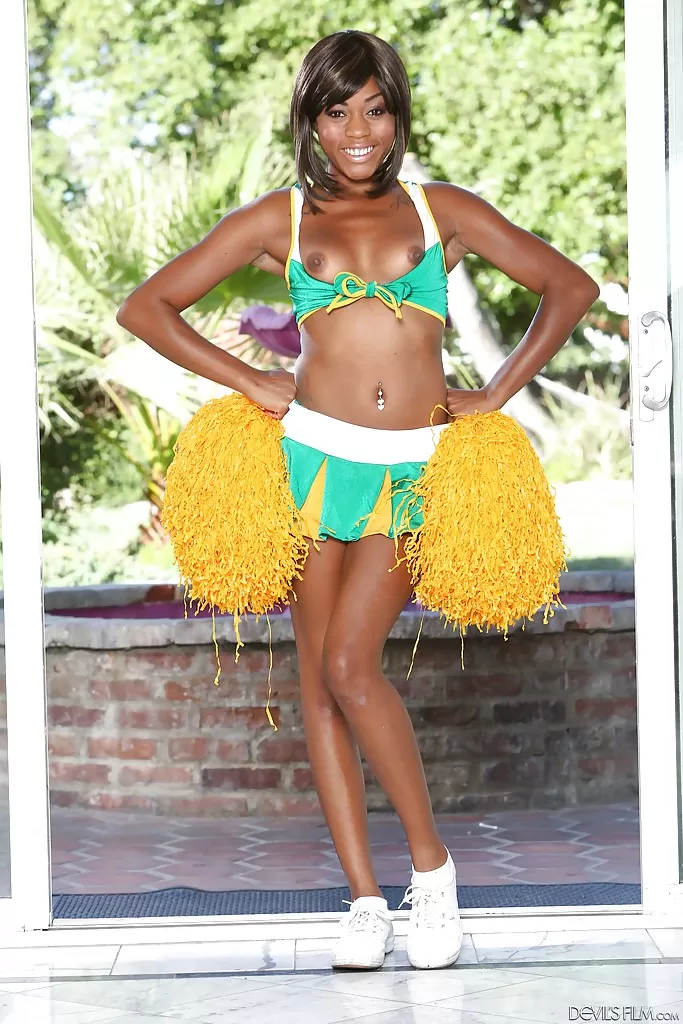 - 4. Рыжеволосая молодая соло девушка Кимберли Брикс снимает униформу болельщицы.