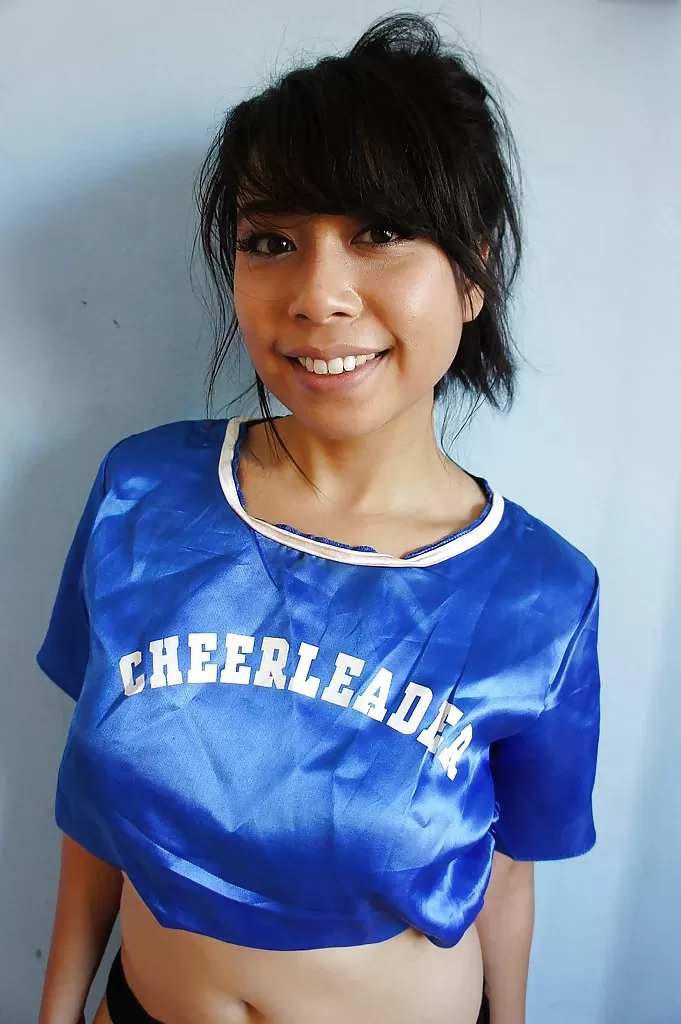 - 5. Улыбающаяся болельщица раздевается и обнажает свою щелочку крупным планом.