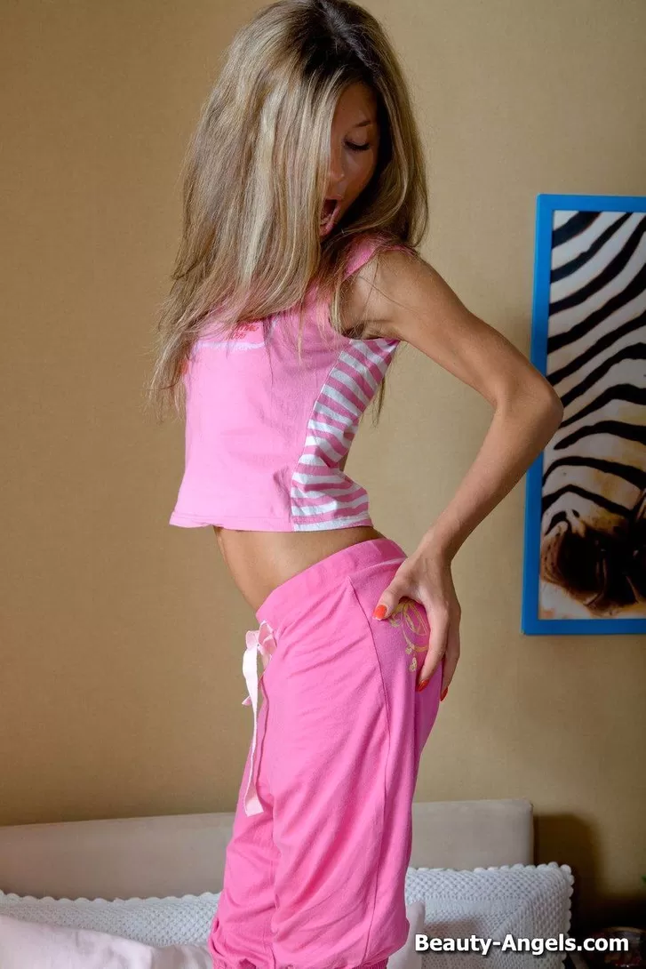 - 2. Очень худенькая девушка Лапа снимает свое платье, чтобы обнажить свою тощую задницу и киску.