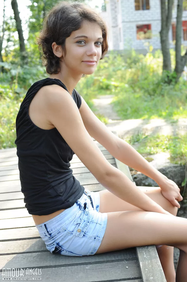 - 5. Симпатичная молоденькая Лилу М снимает бюстгальтер и трусики, чтобы показать свою розовую киску.