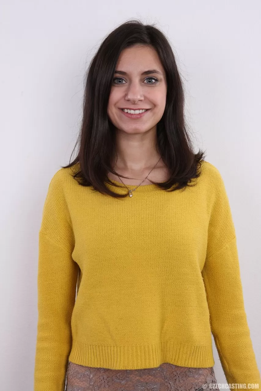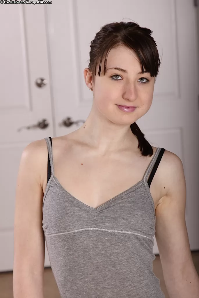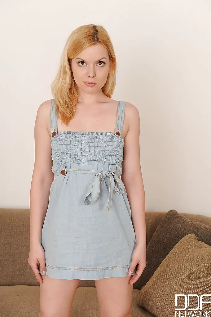- 4. Молоденькая блондинка Кася снимает одежду и шапочку, пока не остается только в белых носках.
