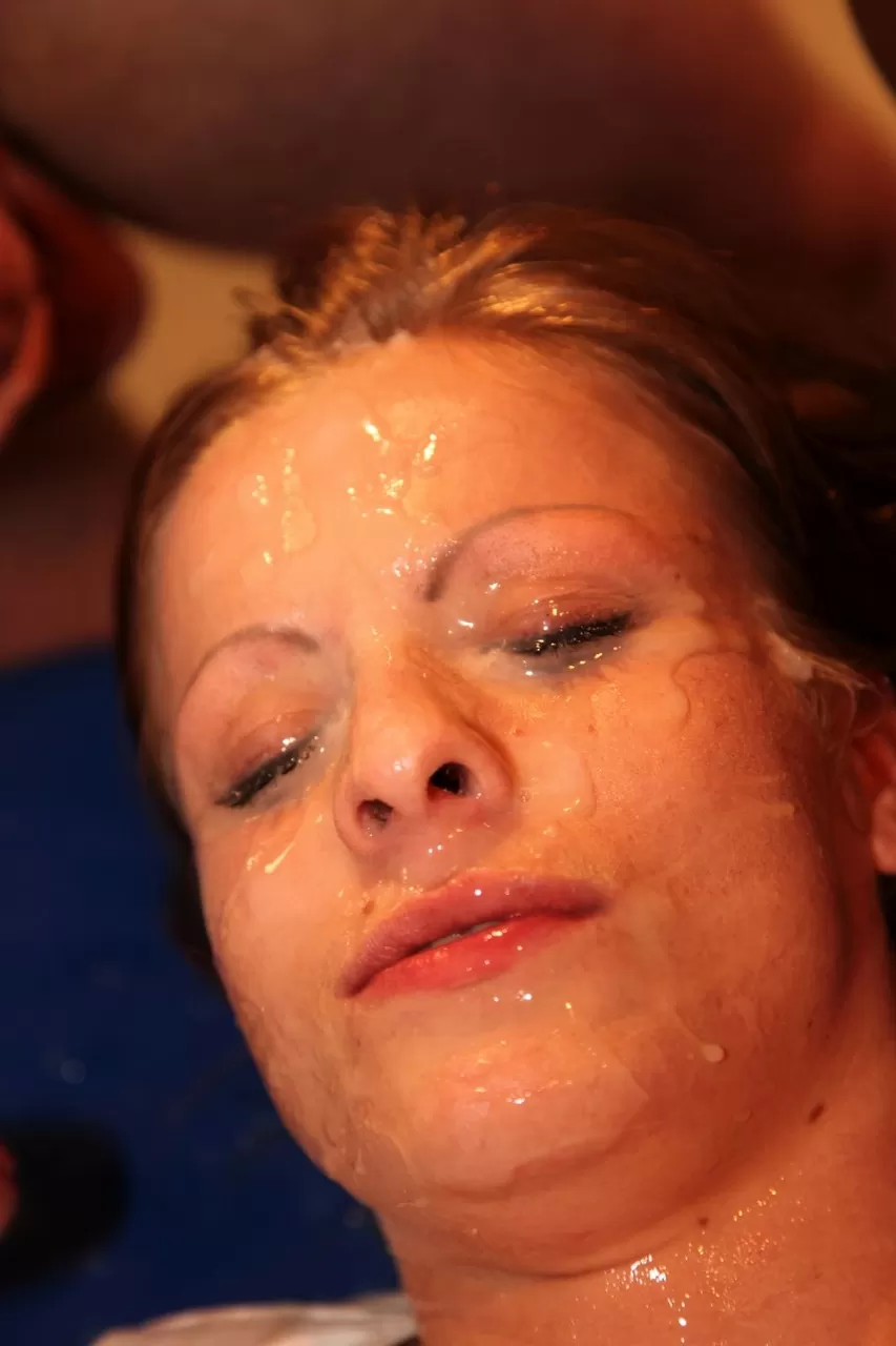 - 2. Британская шлюха получает много спермы на свое лицо во время вечеринки буккаке.