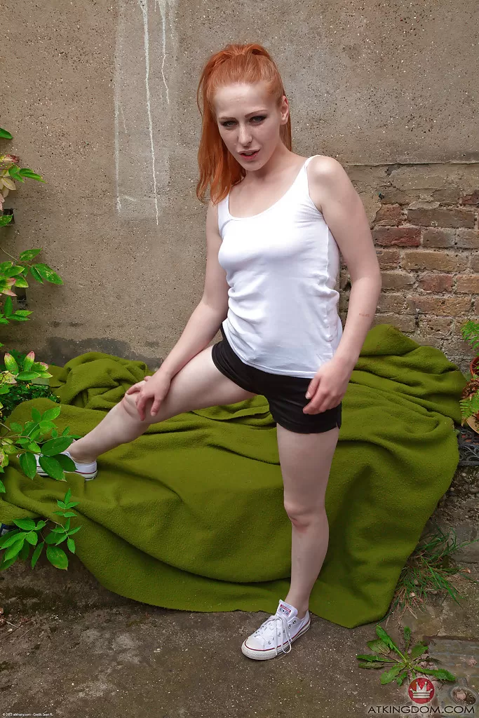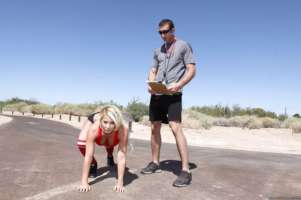 - 4. Спортивная девушка Сапфир Блю раздевается для тренировки с обнаженными упругими большими сиськами.