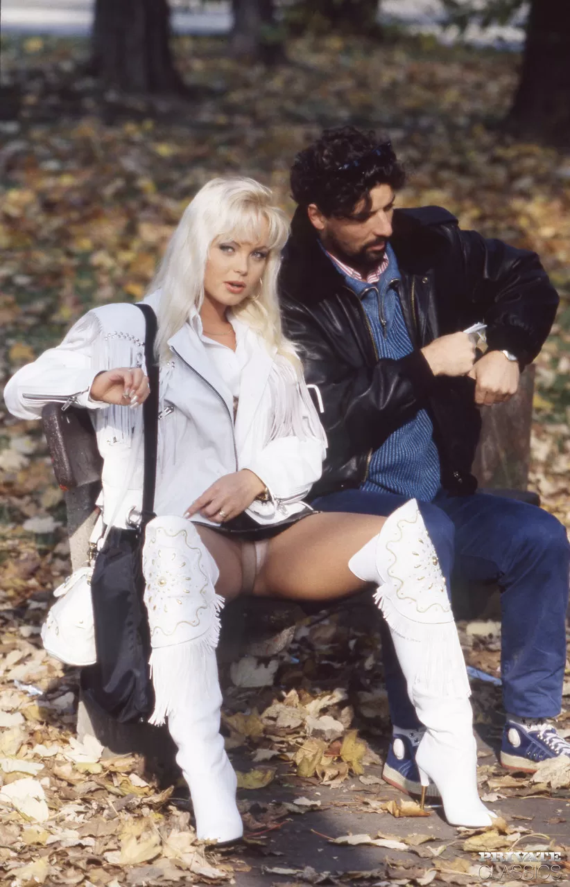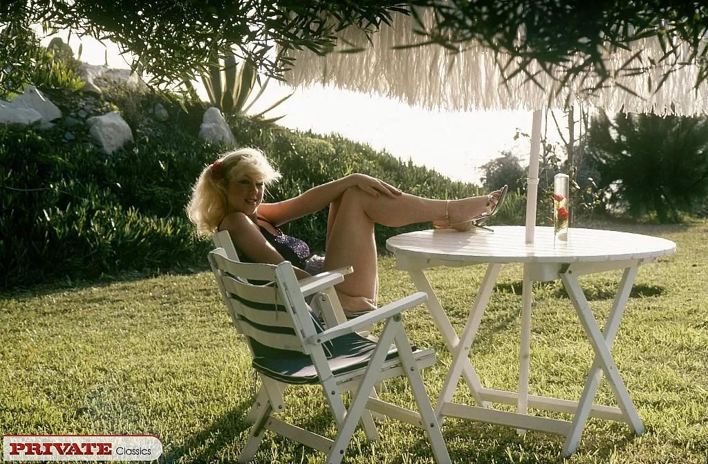 - 2. Винтажная фотомодель Терри Уэллс обнажает свои большие сиськи и волосатую киску на открытом воздухе.