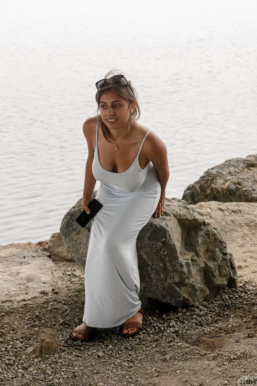 - 3. Дерзкая молодая шлюха Лайла раздевается у воды и обнажает свое волосатое тело.