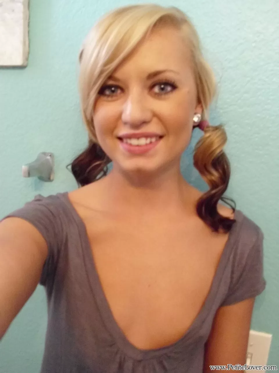 Симпатичная блондинка Брианна делает селфи, обнажая свое возбужденное тело