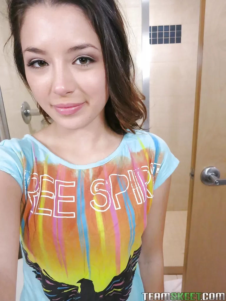 Сексуальная студентка Эмили Грей делает селфи со своими маленькими сиськами и голой лысой киской 56685045