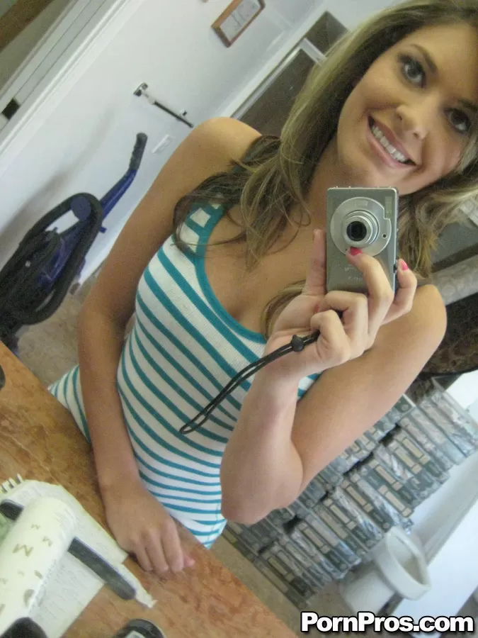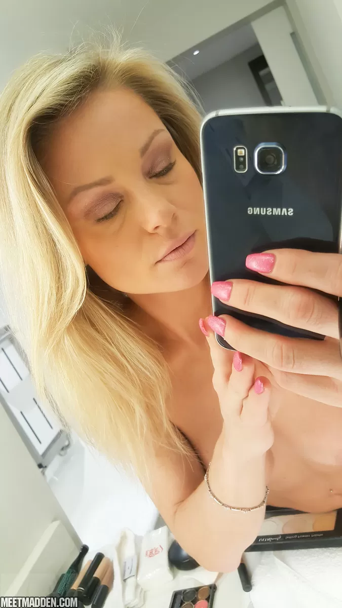 Симпатичная блондинка любительница познакомиться с Мэдденом делает селфи, снимая одежду 22532586
