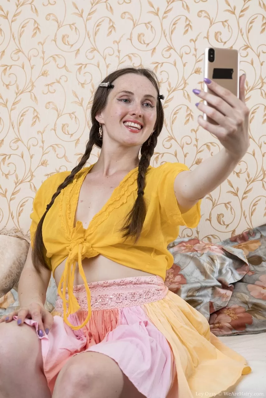Любительница Лей Оззи делает селфи с заплетенными косичками, прежде чем показать свой куст 29907027