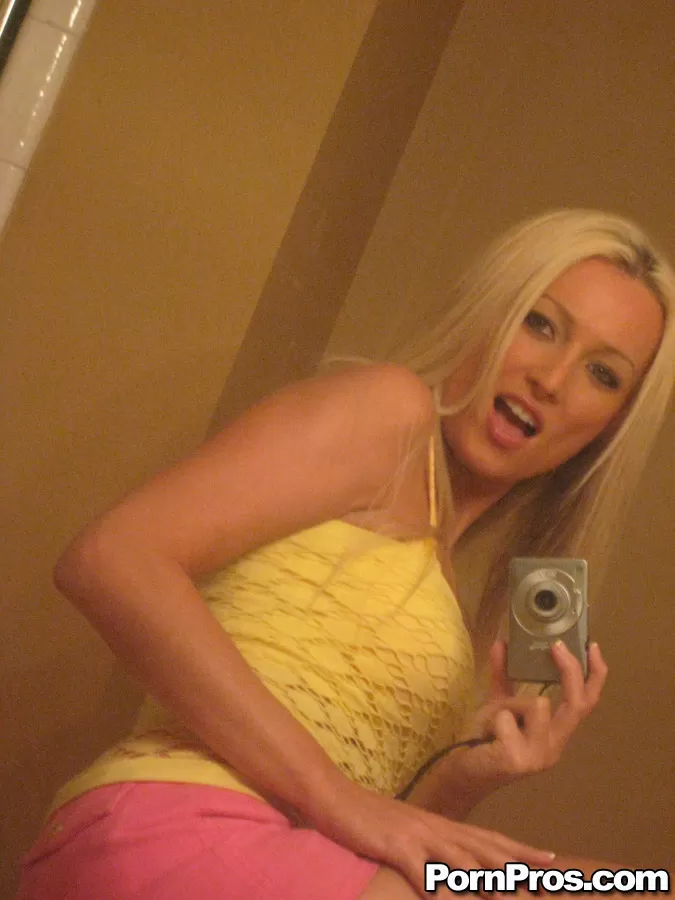 Коренастая блондинка Мишель Хани делает обнаженные селфи в зеркале 33870007