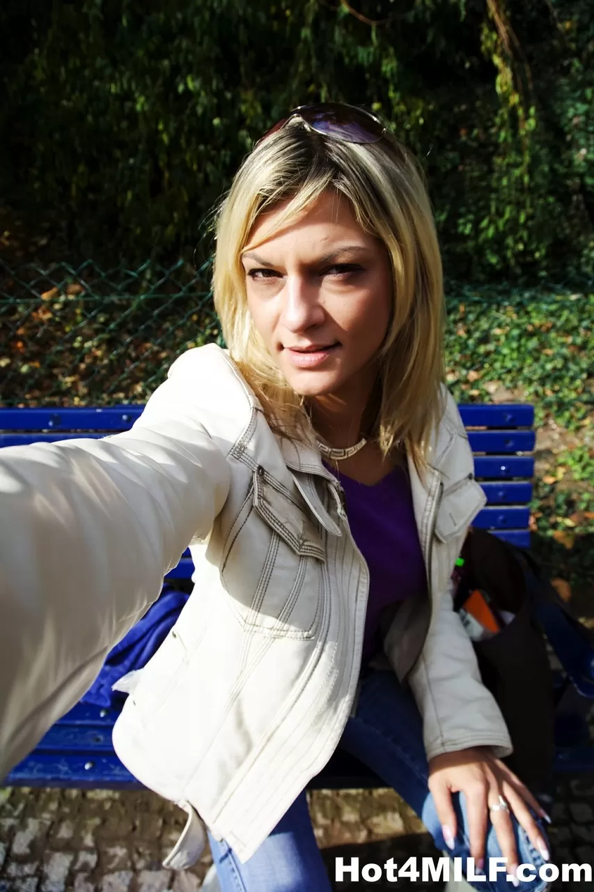 Горячая блондинка милфа занимается сексом втроем в парке 15600158