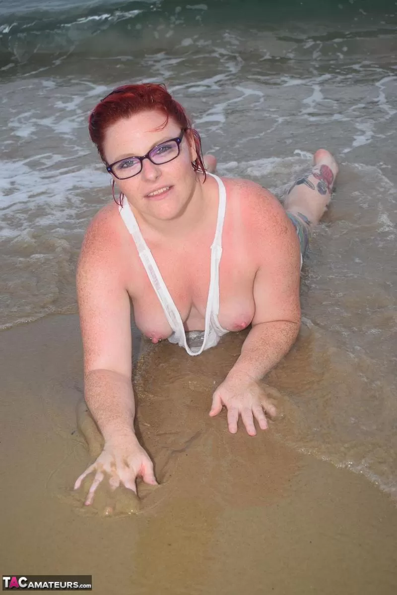 - 5. Милая блондинка средних лет Сьюзи полностью раздевается на песчаном пляже.