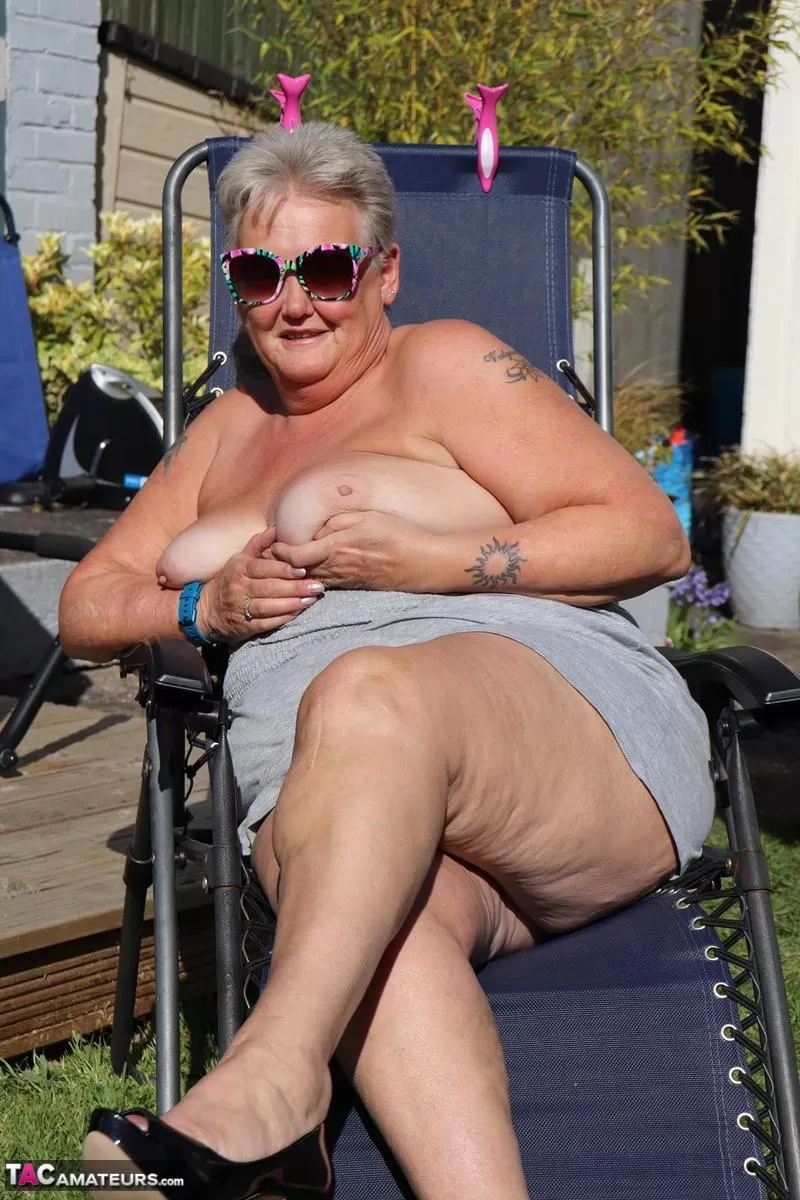 - 5. Пухленькая бабуля Рейна Шайн обнажает огромные сиськи и раздвигает пизду.