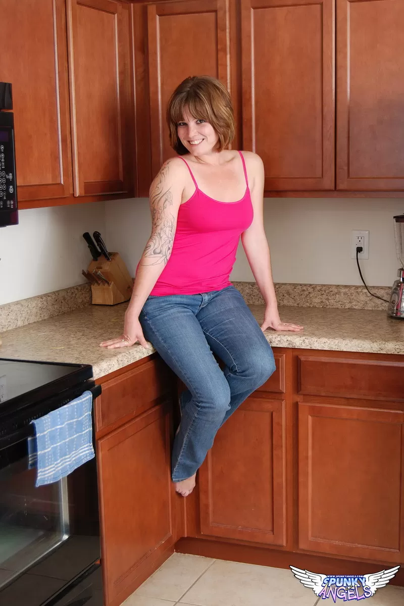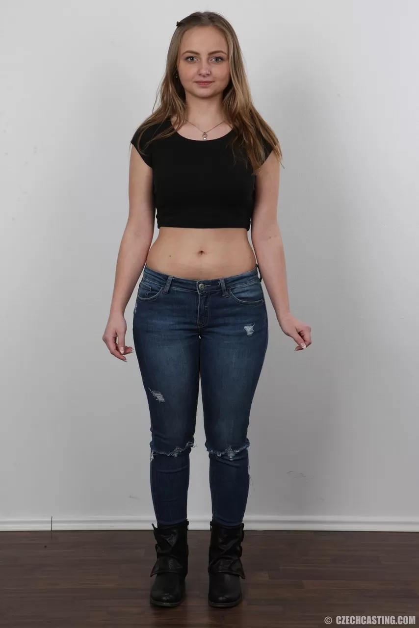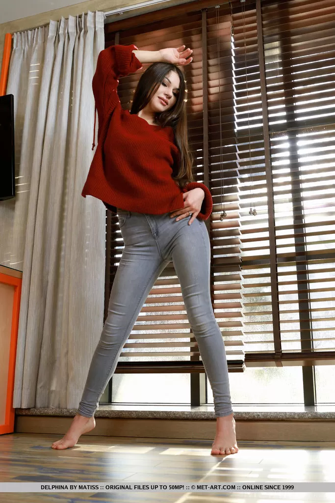 - 3. Скользкая подросток в джинсах раздевается догола и раздвигает свои мягкие половые губки.