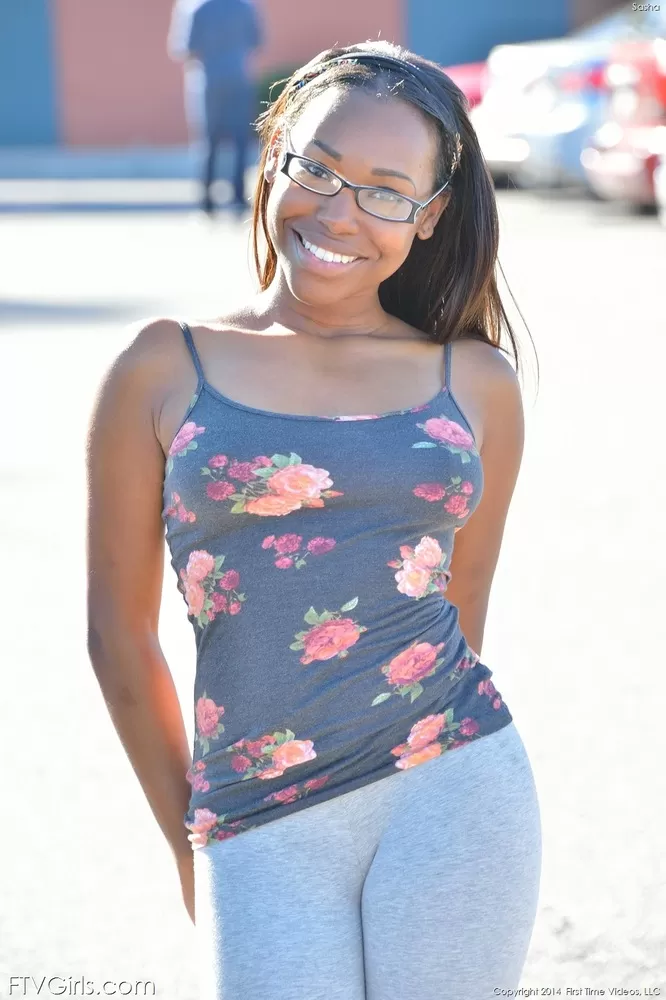 - 1. Миниатюрная негритянка Кали раздвигает свою подстриженную киску после раздевания до носков.