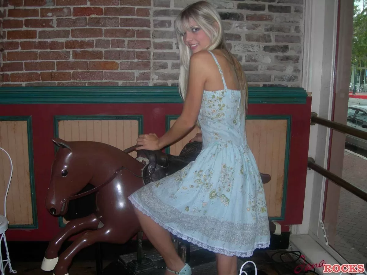 - 2. Эротичная милашка Кэнди в юбке-нагруднике мелькает хлопчатобумажными трусиками под юбкой в траве.