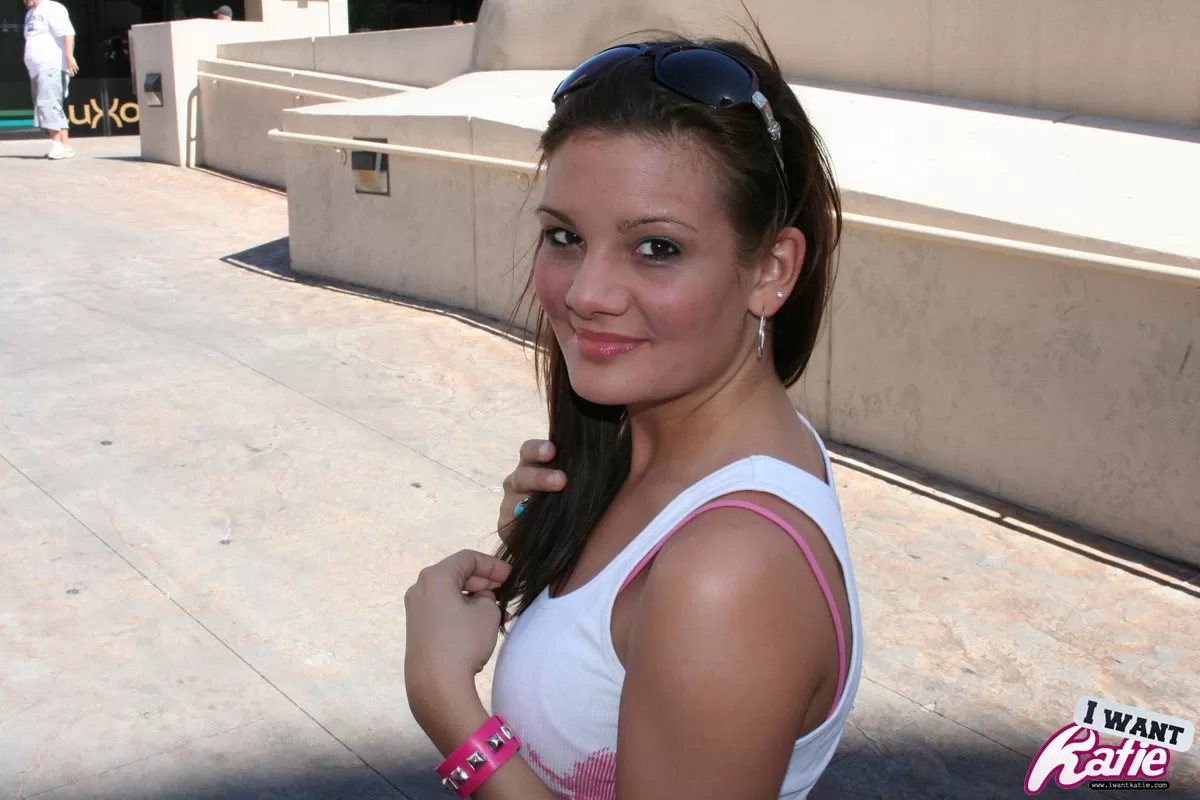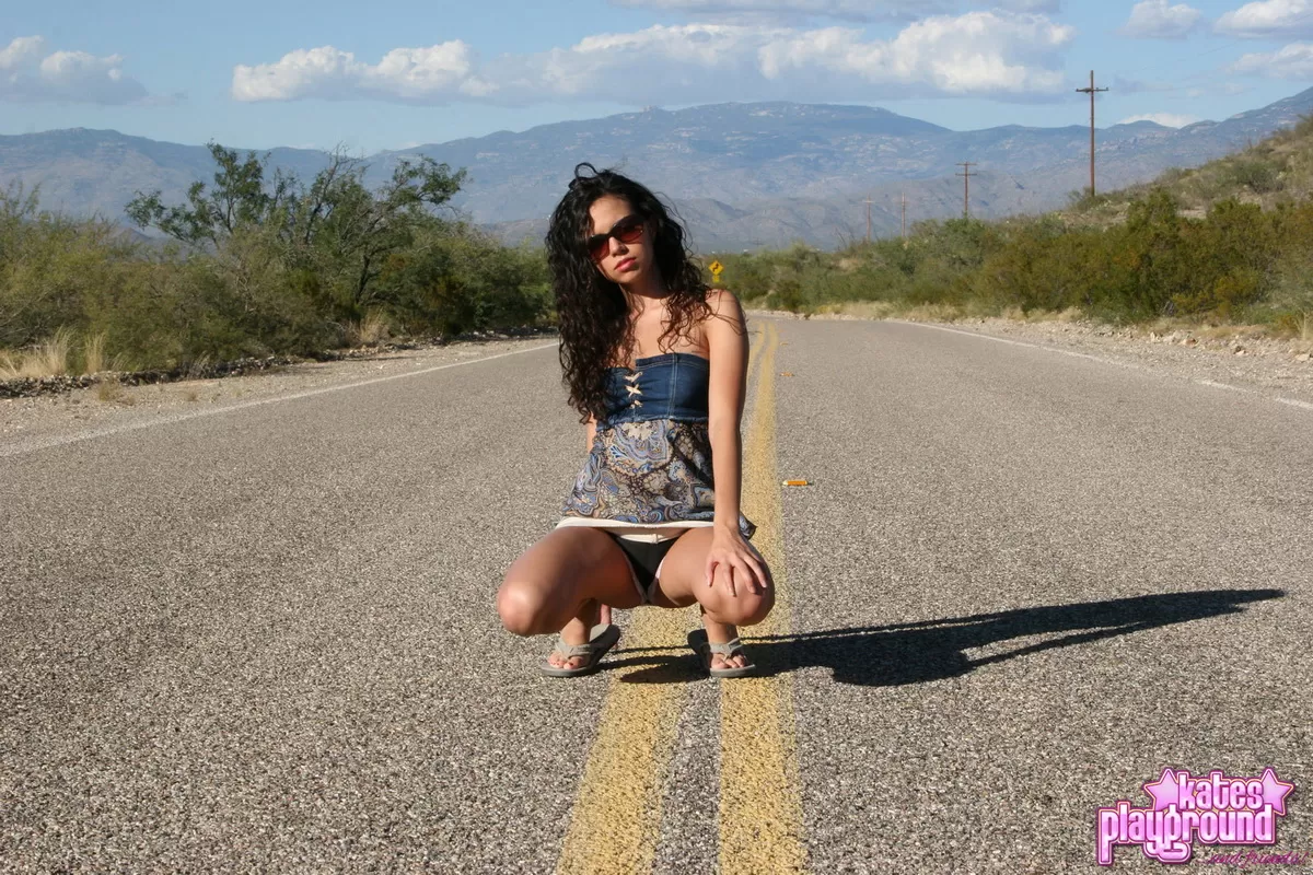 - 1. Очаровательная брюнетка любительница Эсси Халладей позирует и мигает снаружи.
