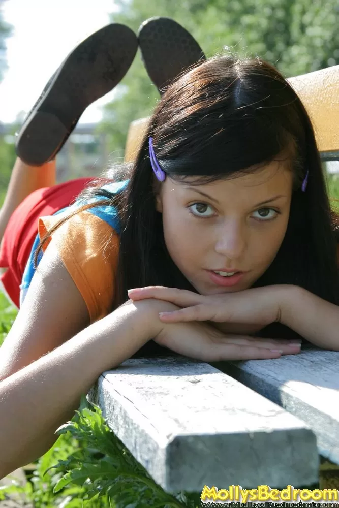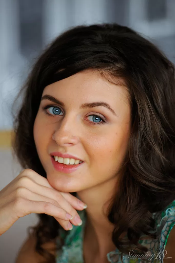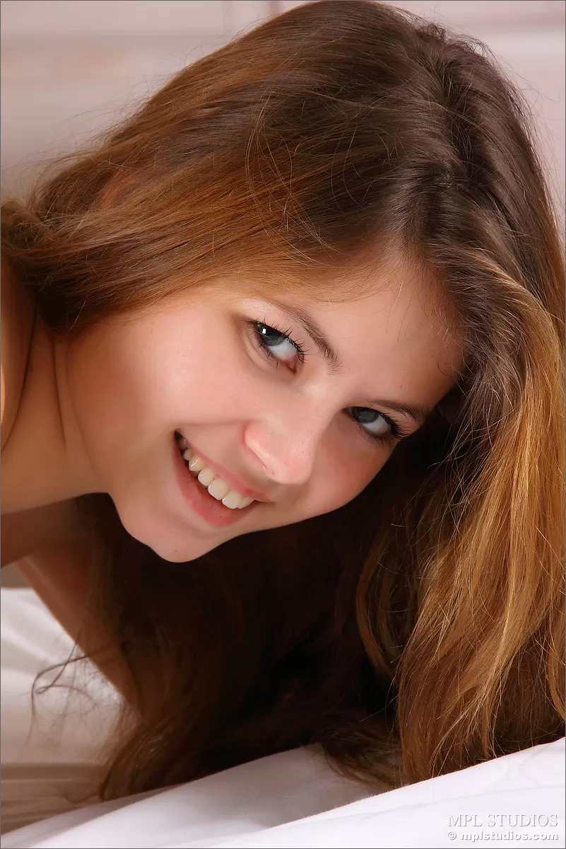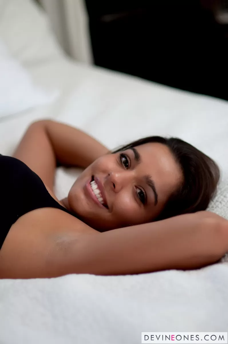 - 4. Молоденькая брюнетка Davina E носит только улыбку на своем хорошеньком личике во время сольных поз.