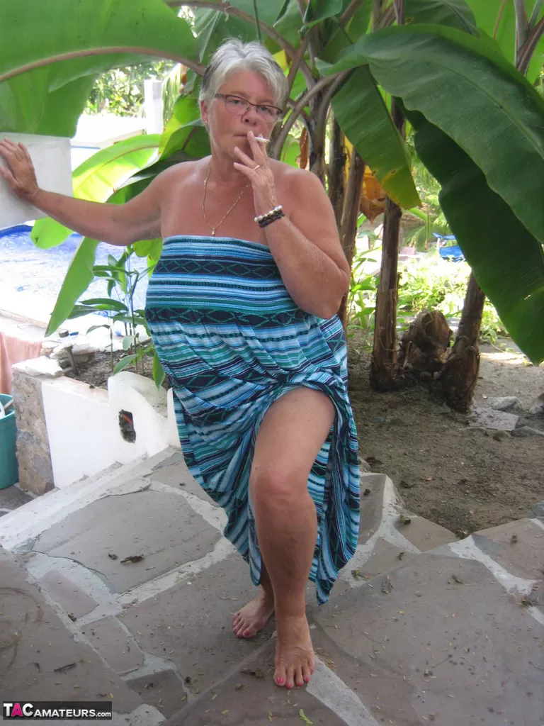 - 5. Тучная британская леди бабушка Либби выставляет напоказ свои большие сиськи под деревом.