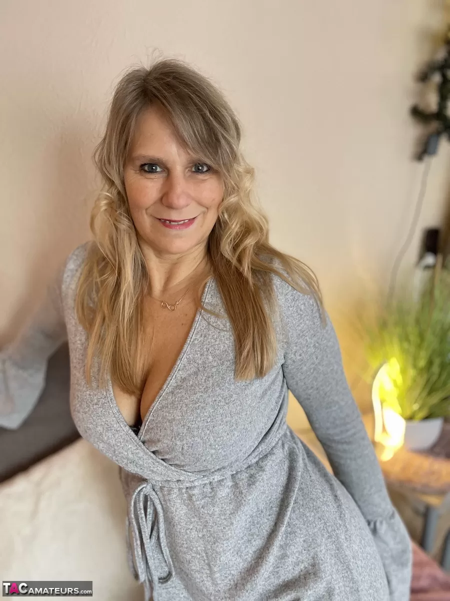 - 4. Более чем 30-летняя платиновая блондинка Нести раздевается до пят перед сексом на кровати.