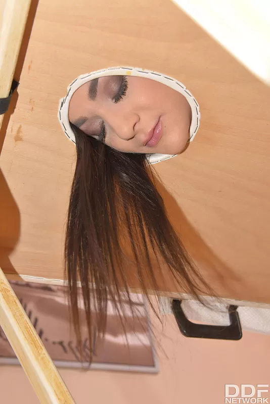 - 3. Худенькая рыжеволосая подросток Алайя полностью раздевается на столе.