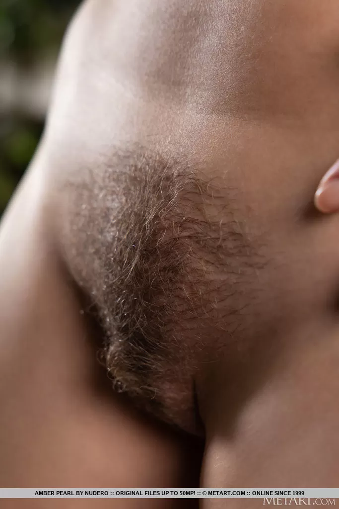 Красивая девушка Эмбер Перл принимает великолепные обнаженные позы рядом с цветами