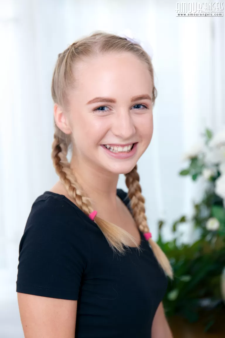 - 1. Ангельская подросток Нита обнажает свое упругое тело с волосами, заплетенными в косички.