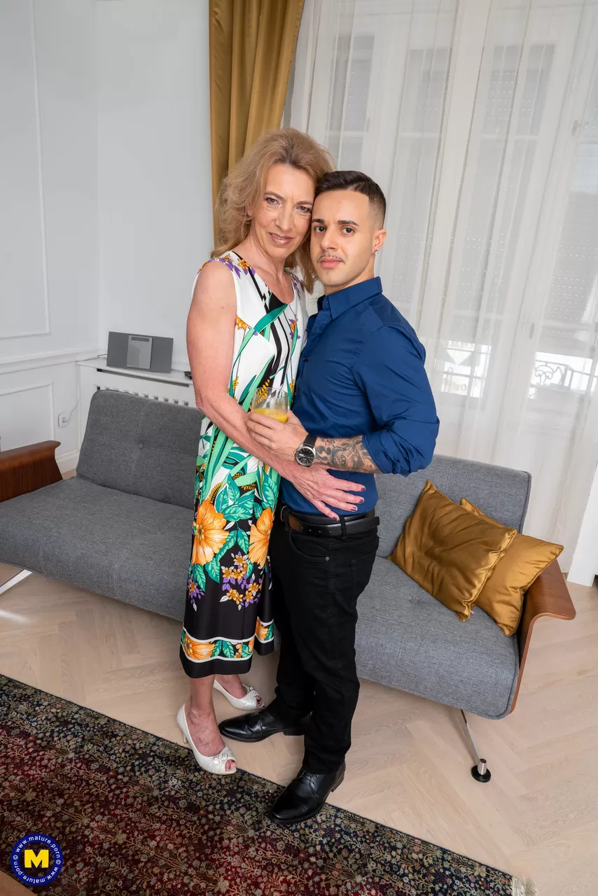 Старая блондинка получает сперму на свою задницу после секса со своим мальчиком