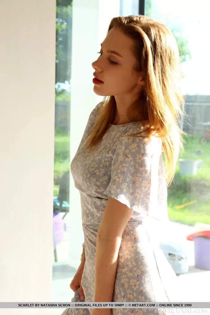 » Красивая девушка Скарлет снимает длинное прозрачное платье, чтобы позировать о