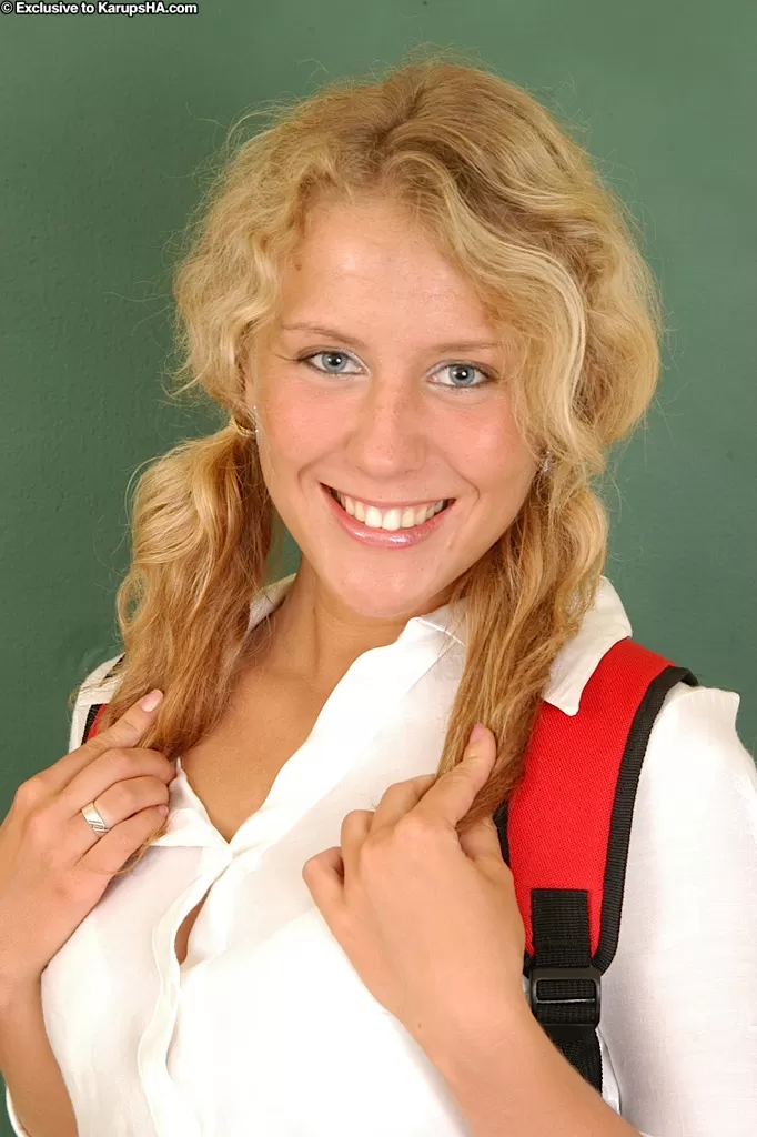 » Молодая блондинка Лита снимает милые трусики перед тем, как занять место в классе в обнаже