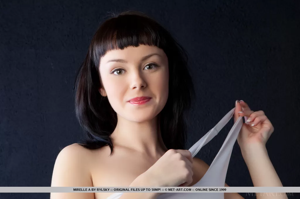 Темноволосая молоденькая Мирель А выставляет напоказ спелую молодую грудь в обнаже