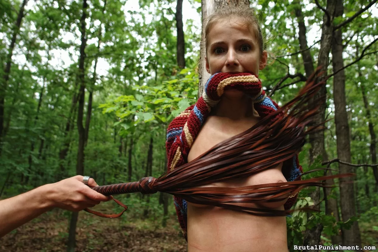 » Миниатюрную блондинку выпороли, привязав к дере