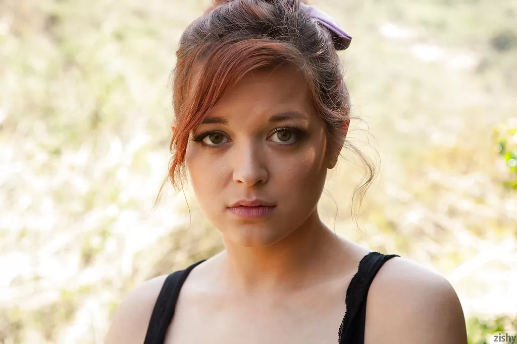 » Натуральная грудастая красотка брюнетка обнажает свои изги