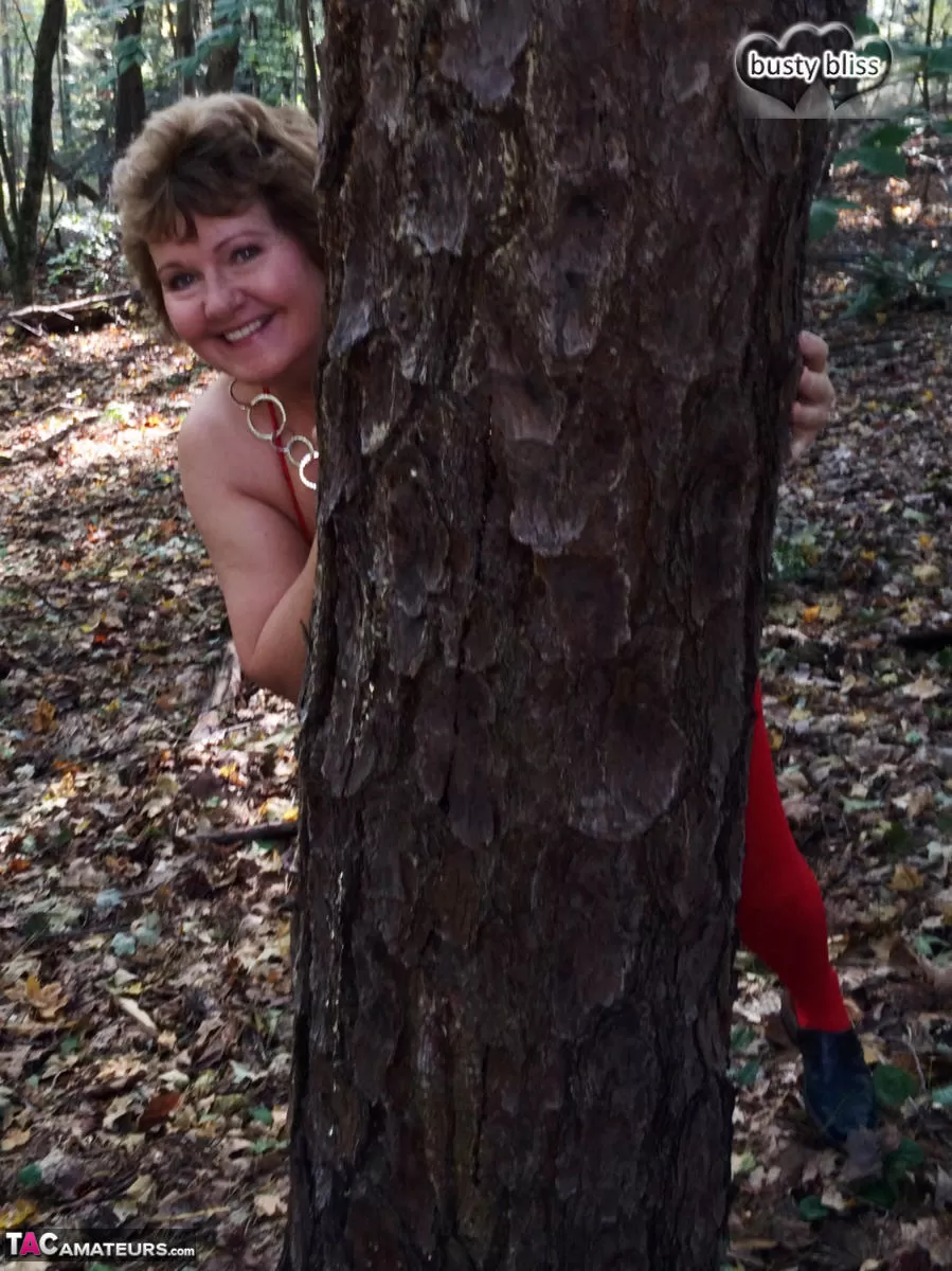 Пожилая грудастая любительница Блисс демонстрирует свои большие натуральные сиськи обнаженн