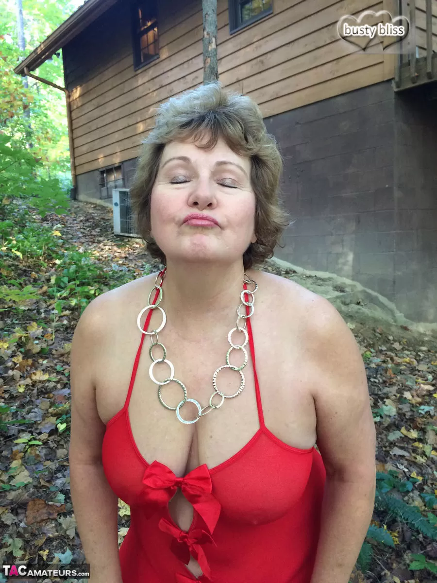 » Пожилая грудастая любительница Блисс демонстрирует свои большие натуральные сиськи обнаженн