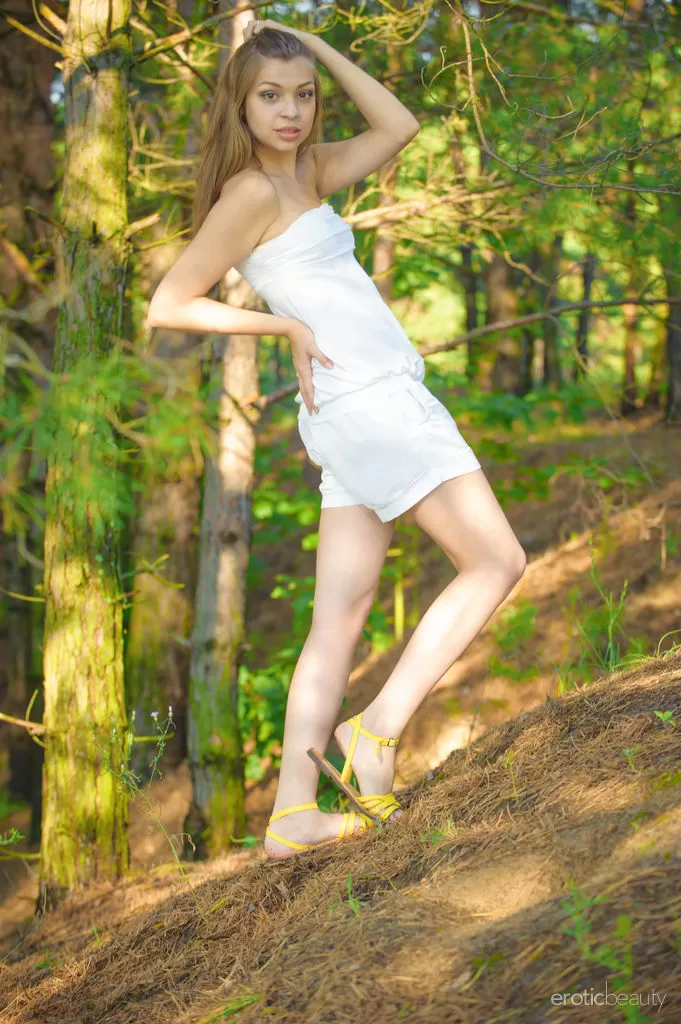 Юная красавица Тато полностью обнажается на подстилке из сосновых игол