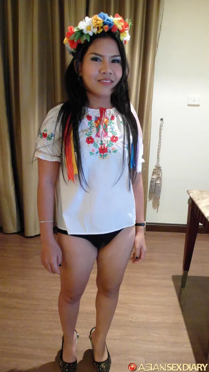 Азиатка Азиза заменяет цветы на своей голове спермой на с
