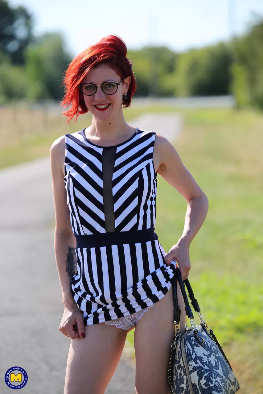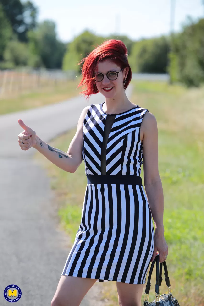 Рыжеволосая любительница занимается сексом с двумя парнями после того, как обнажилась во время путешествия а