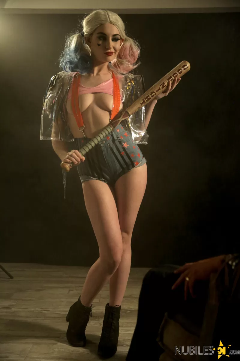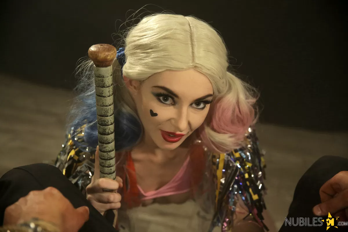 » Молоденькая блондинка Лейси Леннон лижет член перед сексом раком в костюме дл