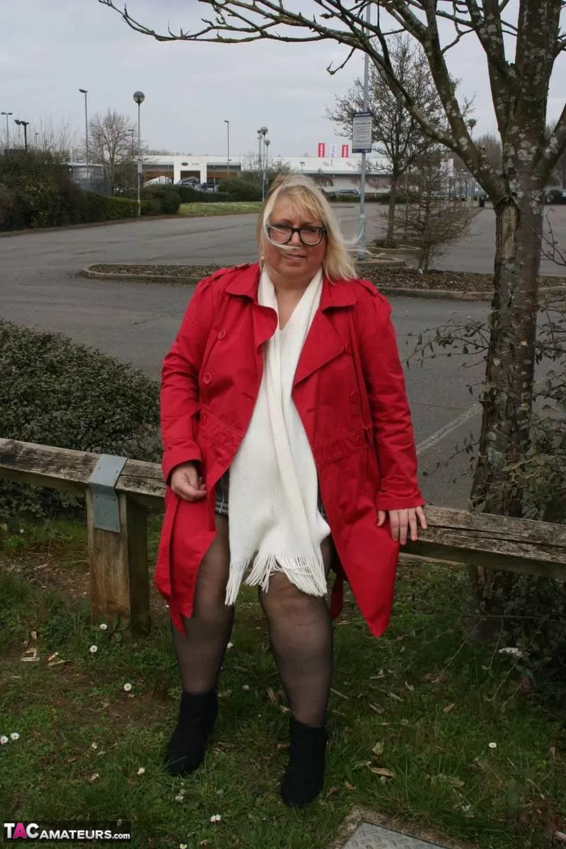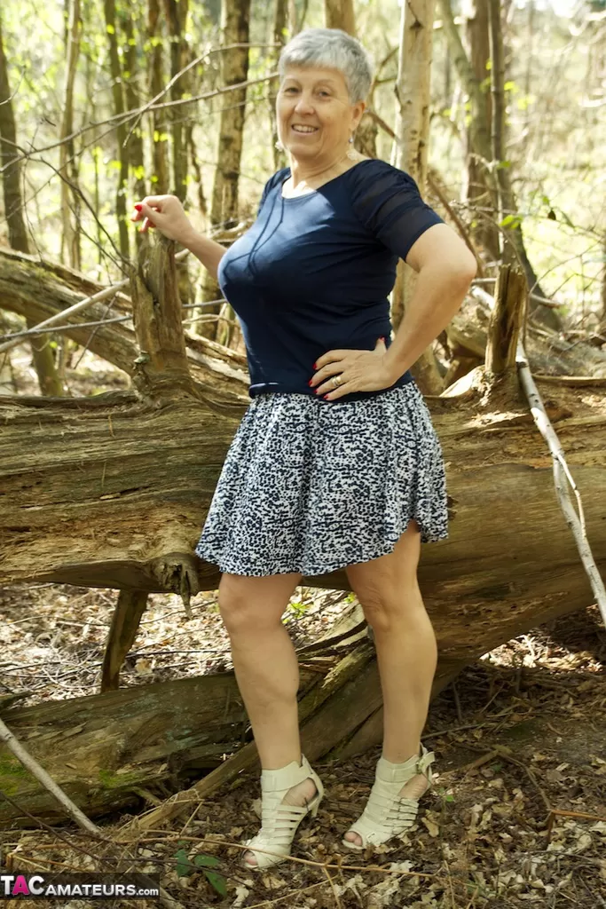 - 4. Тучная бабуля Либби раздевается догола у вечнозеленых деревьев.