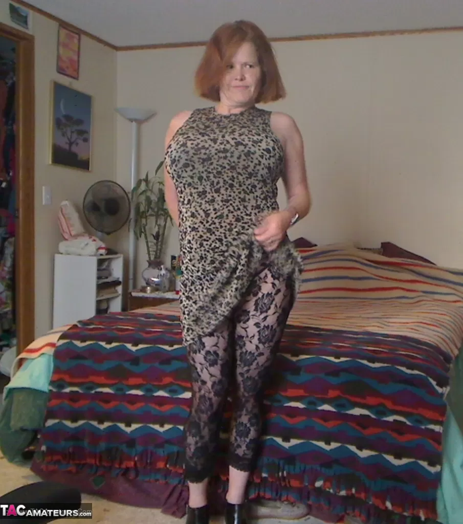 - 2. Толстая Нэн Банни Грэм щеголяет крашеными волосами во время мастурбации на кровати.