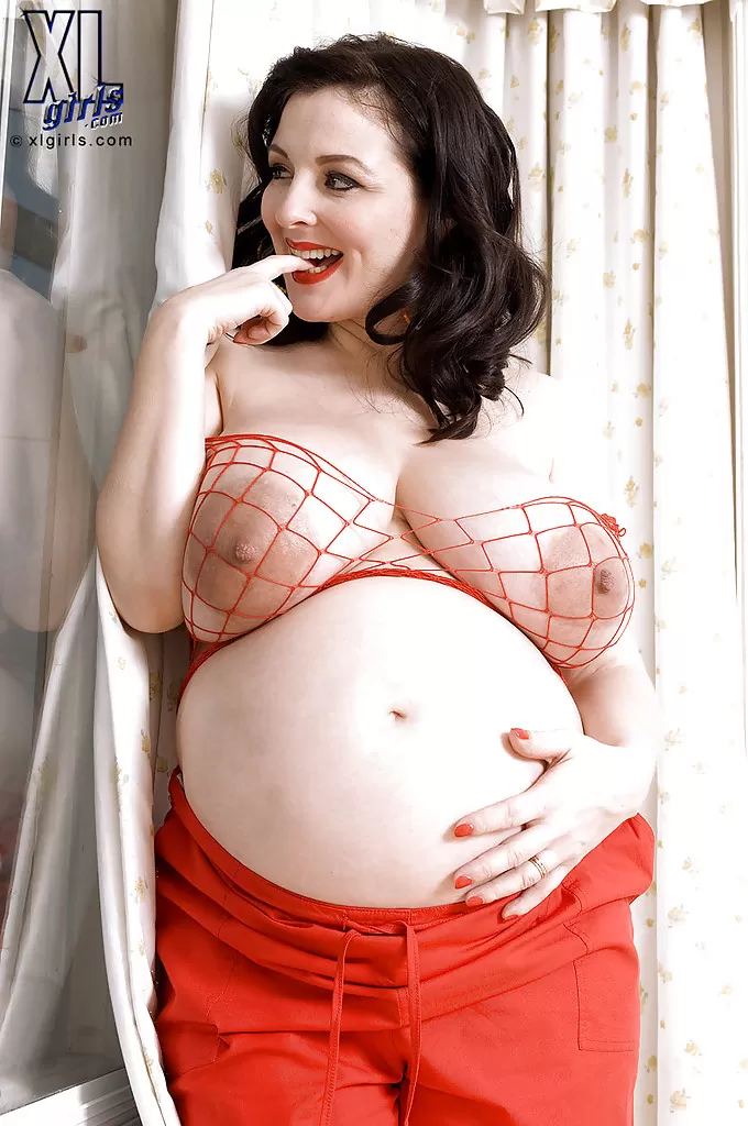 - 4. Толстая беременная красотка с огромной грудью Эйприл Маккензи смазывает маслом свою бритую пизду.