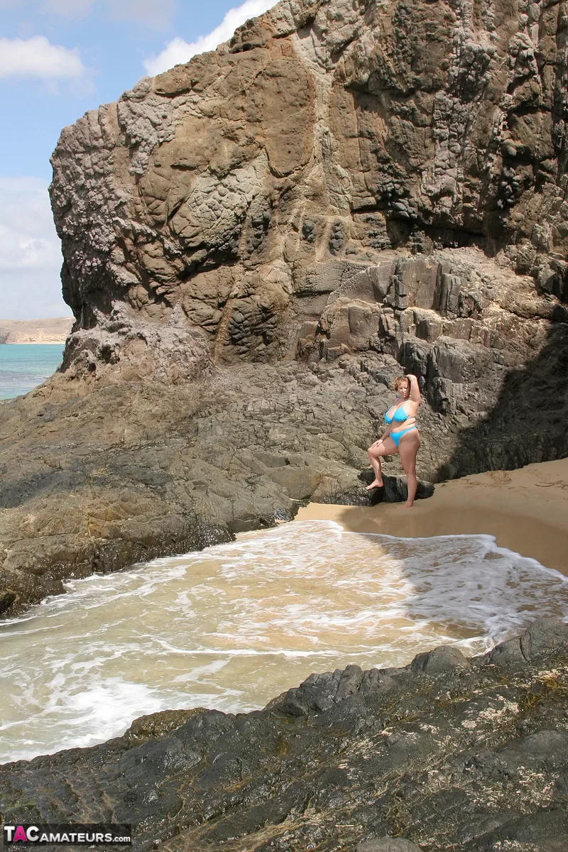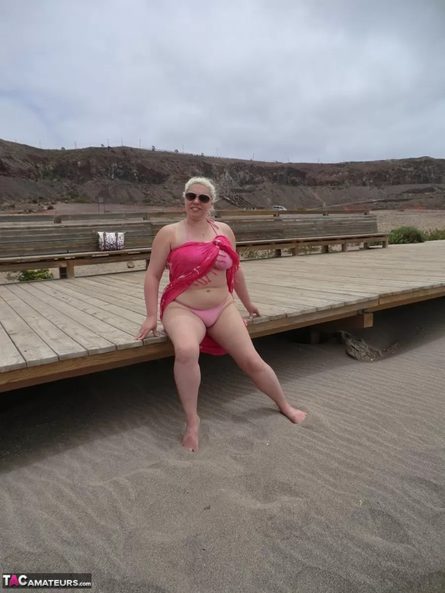 - 3. Сексуальная толстушка Анджела Уайт снимает бикини, чтобы показать массивные отвисшие сиськи на пляже.