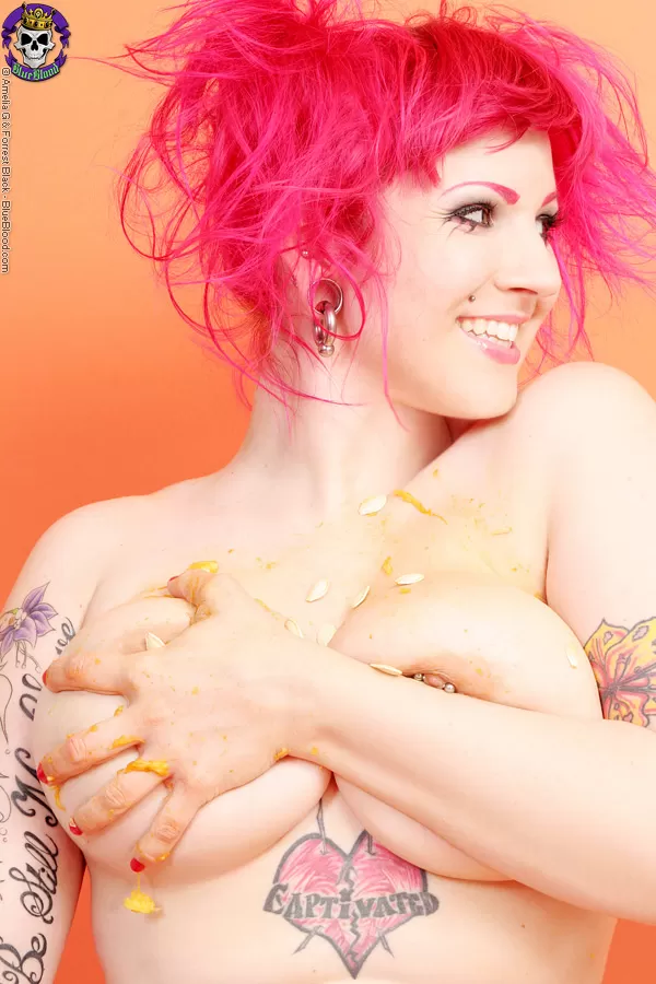 - 5. Пышная блондинка Avengelique освобождает свои большие сиськи и попку от латексного платья.