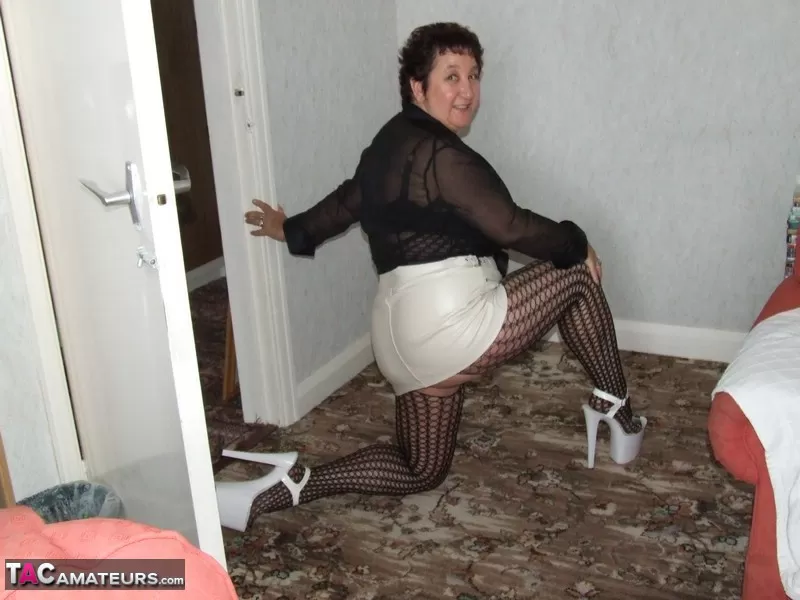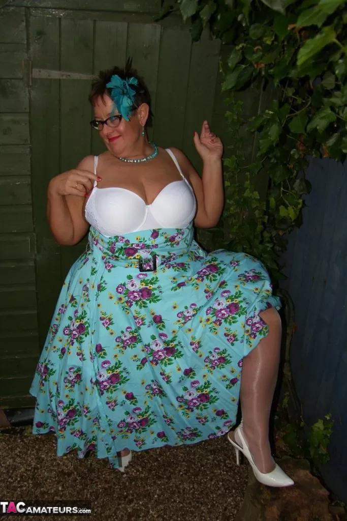 - 1. Пожилая блондинка Мелоди освобождает свои большие сиськи и большую задницу от длинного красного платья.