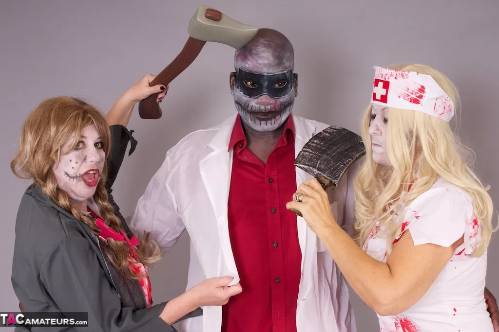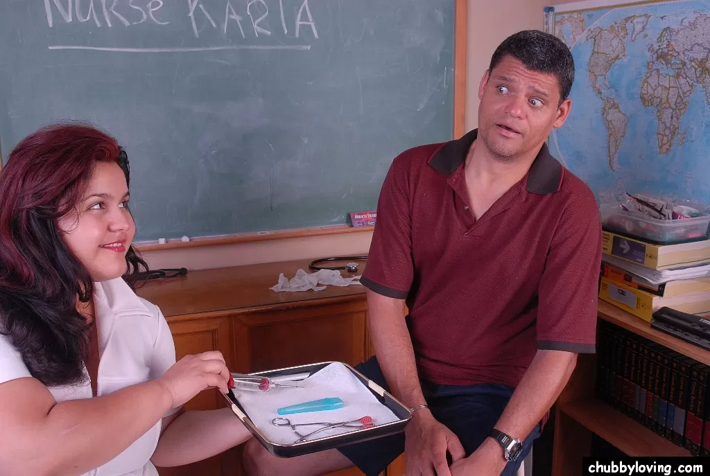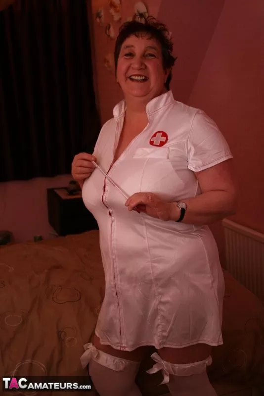 - 2. Любительская толстушки Дорс Фелайн освобождает свои гигантские сиськи от своей непослушной униформы медсестры.