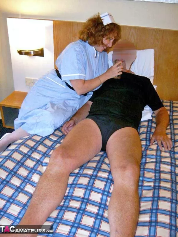 - 1. Зрелая медсестра толстушки Сиси позволяет большой отвисшей груди свободно выпасть из униформы.